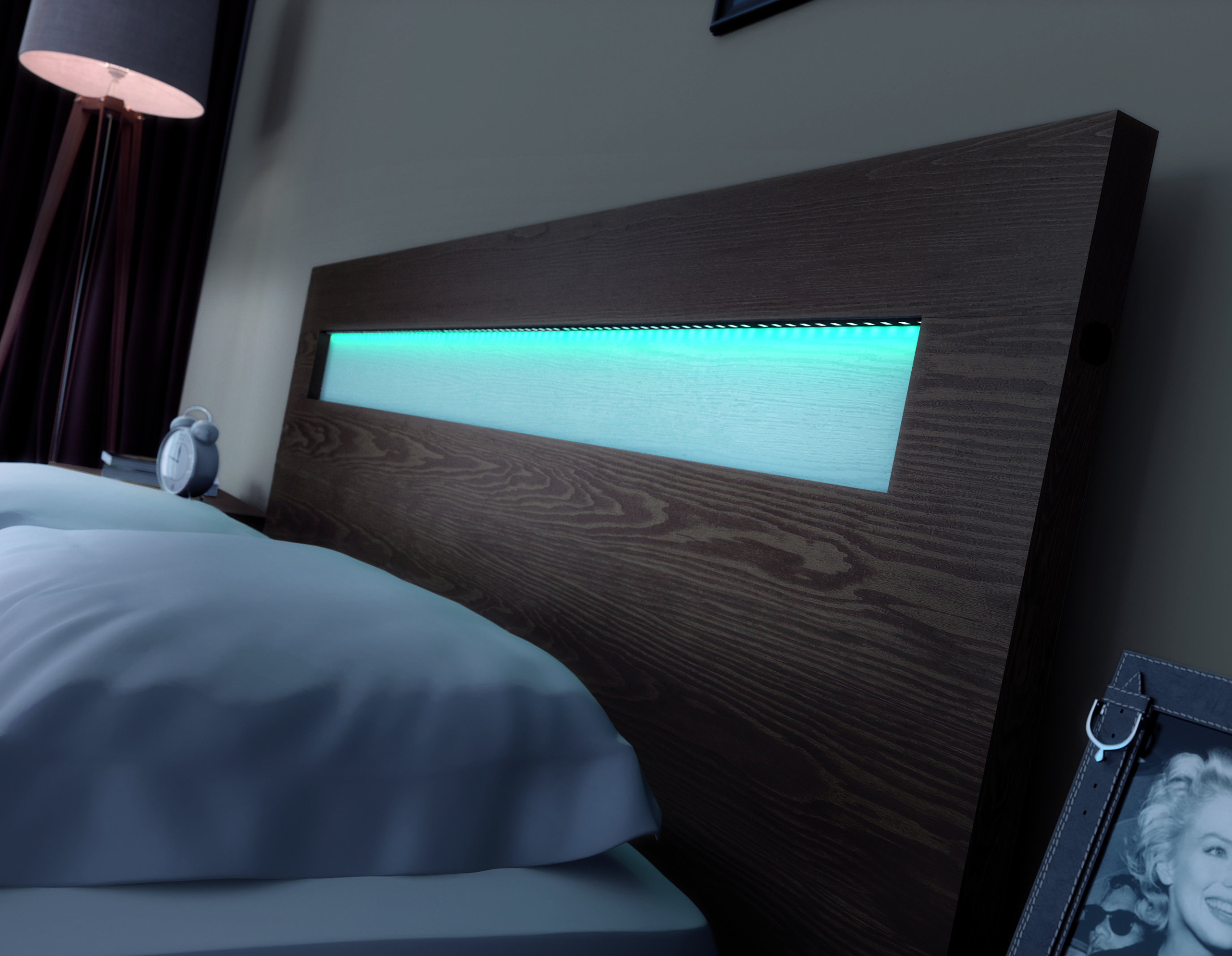 Cabeceira de Cama em Pinho chocolate com Leds. Fabricamos cabeceiras de cama por medida.