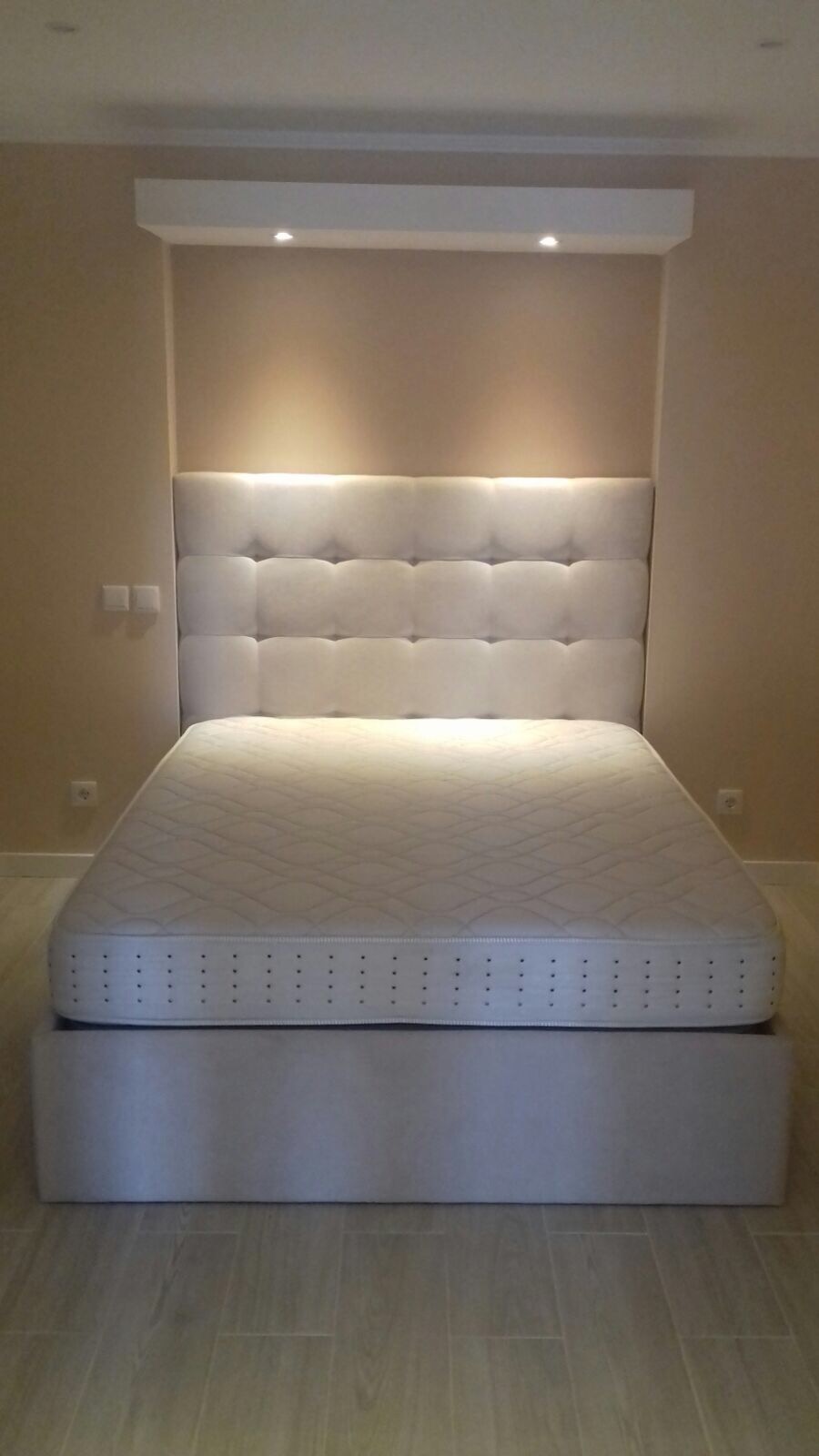 Cama estofada com cabeceira de Cama estofada com elementos diferentes.Fabricamos cabeceiras de cama por medida.