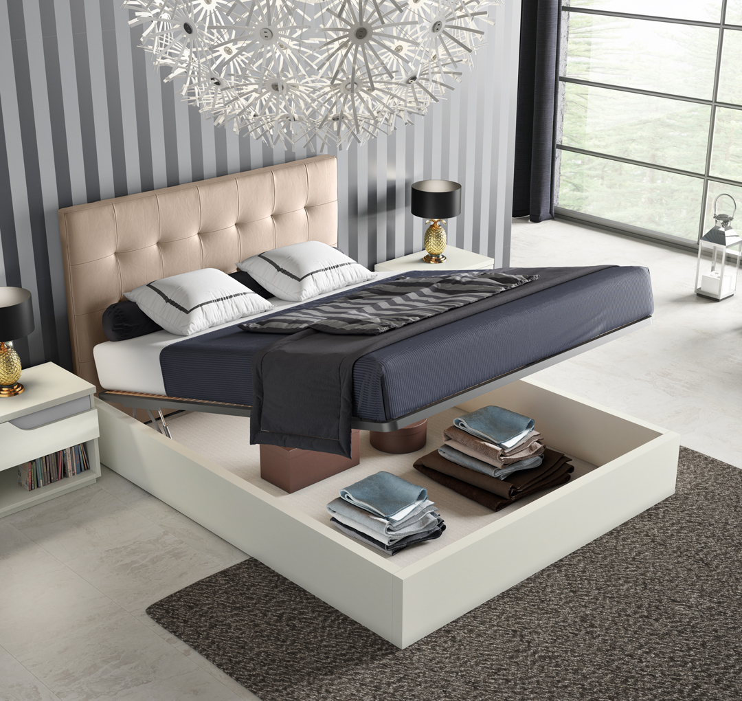 Sommier em lacado branco com estrado elevatório. Fabricamos sommiers por medida.